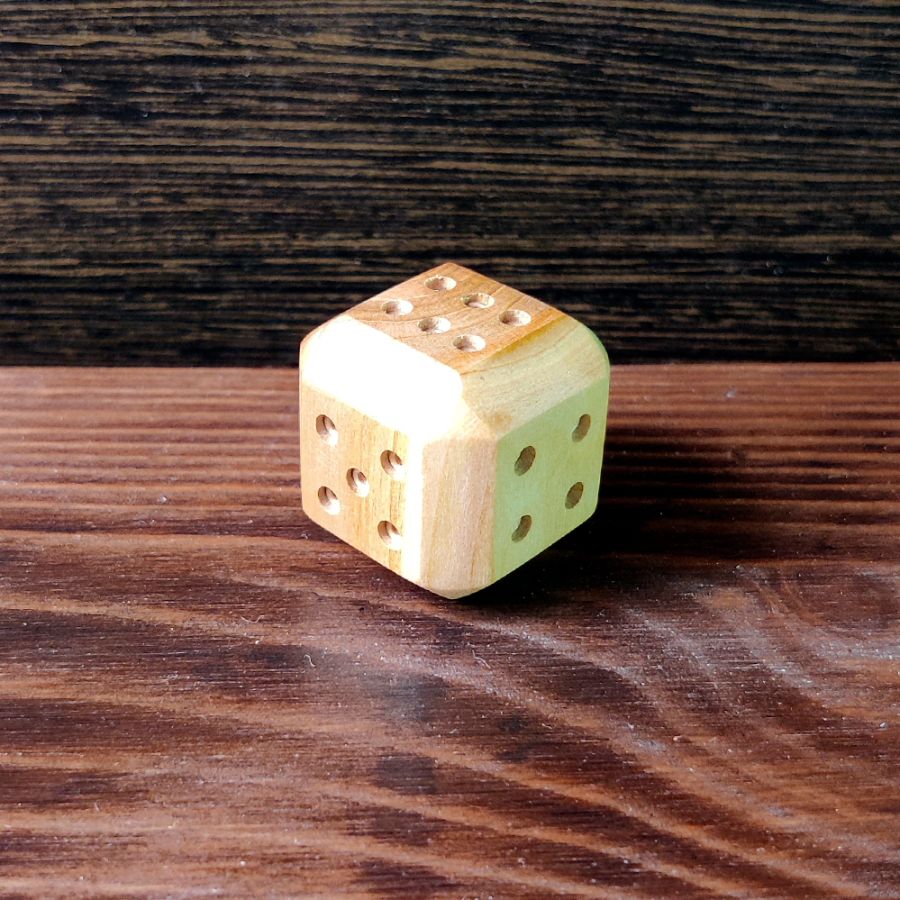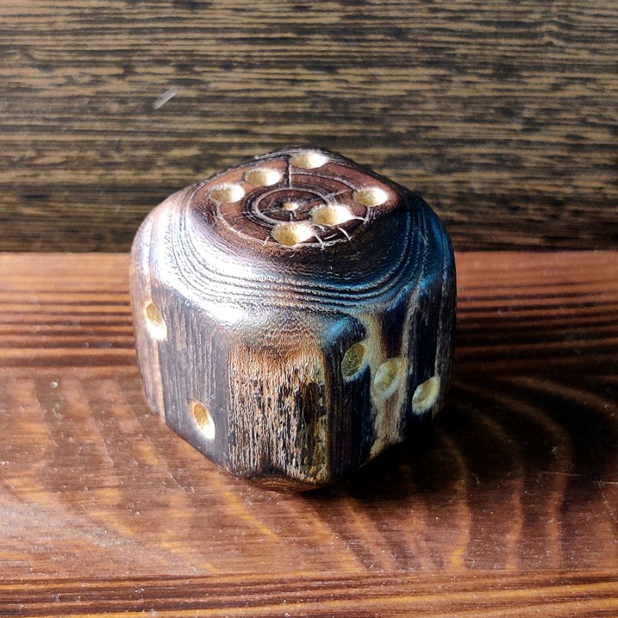 Как не бывает двух одинаковых историй игроков на поле Лилы, так и нельзя найти два идентичных кубика – всякий кусочек дерева находился в разных условиях: география произрастания, возраст дерева, момент трансформации - превращения из кусочка дерева в инструмент мастером краснодеревщиком. Всё это придавало ему уникальные свойства. Вместе с полем Лилы деревянный кубик стократ умножает энергию древнейшего инструмента, фокусируя энергию смыслов в пространстве игры.